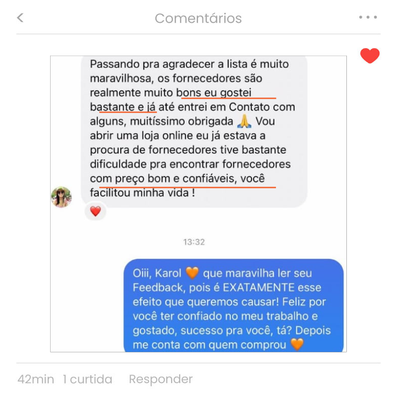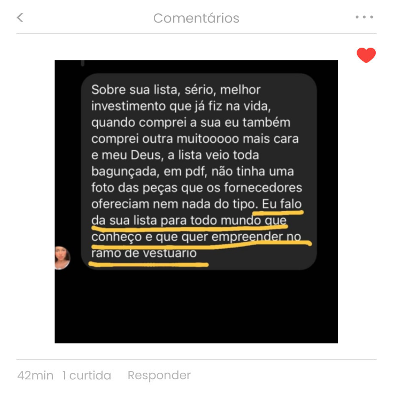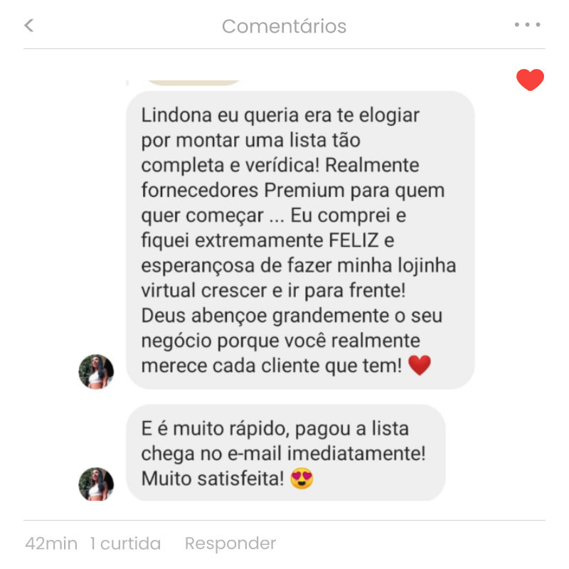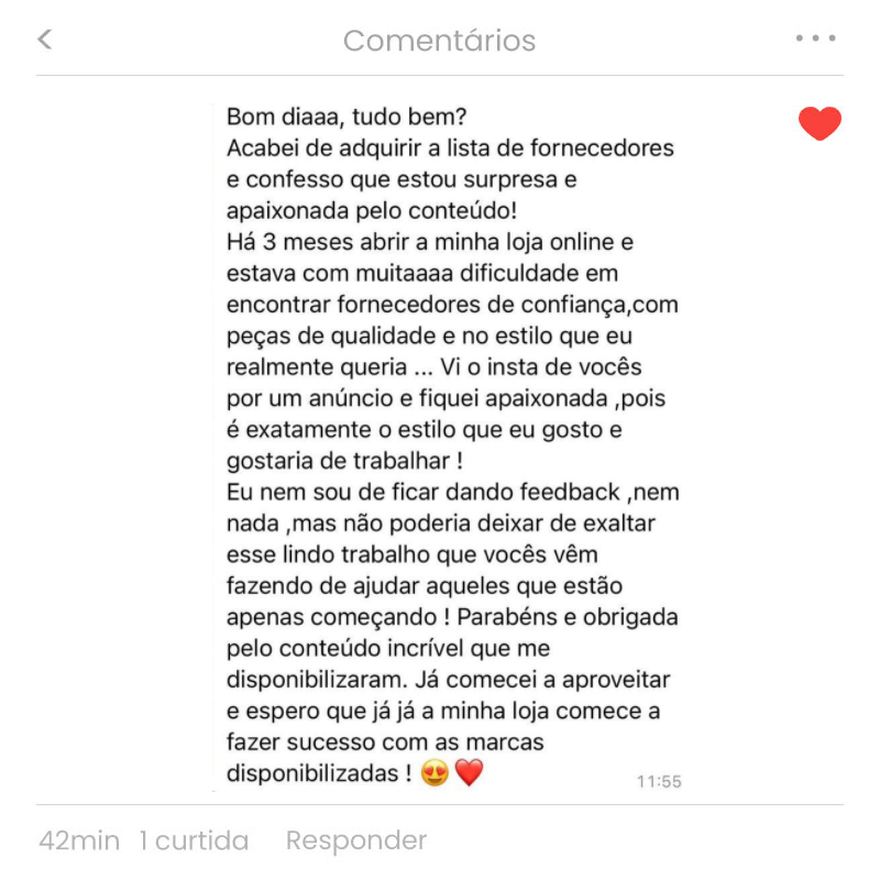 Além disso, mais de 4 mil pessoas já adquiriram as minhas listas de fornecedores de moda feminina e infantil e estão super satisfeitas.