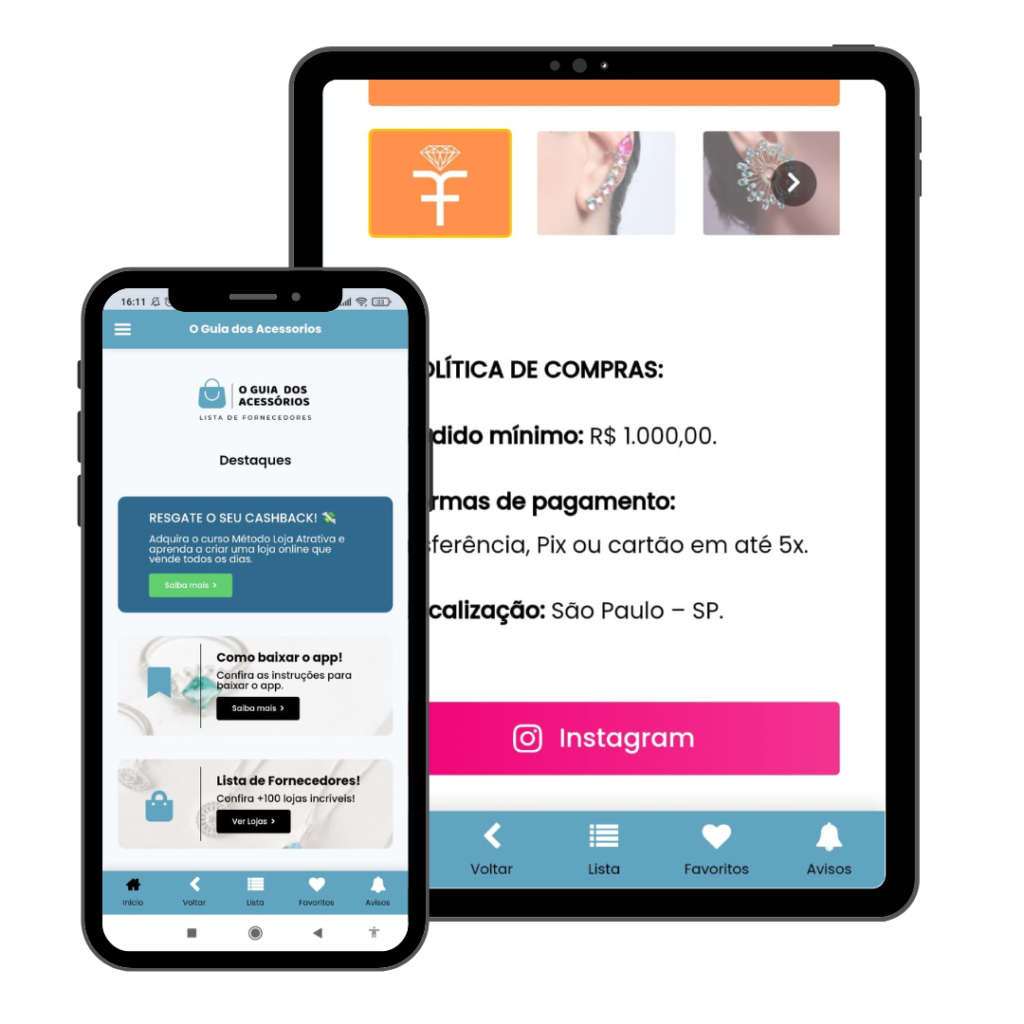 E por isso eu criei o Guia dos Acessórios – para que você tenha acesso aos melhores fornecedores que eu catologuei nesses mais de 2 anos empreendendo no ramo.