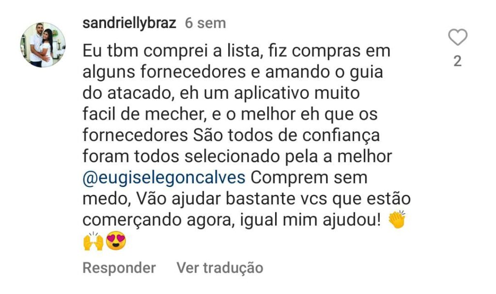 Sou dona de loja há mais de 2 anos e ensino outras empreendedoras a encontrar fornecedores seguros e abrirem as suas lojas online.